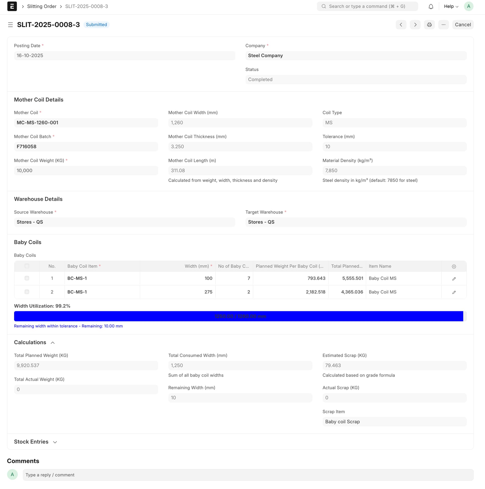 Any guidance, especially from those who have implemented ERPNext for slitting or coil processing within the manufacturing module, would be greatly appreciated!