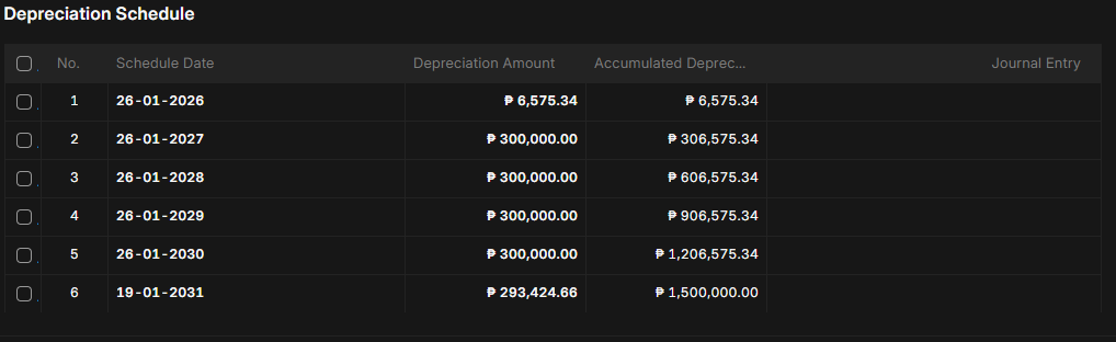 The error says that if the creation of deprecation schedule is being checked it generate a report at the back based on the current fiscal year and the deprecation scheduled that being set and “Jan 2026“ is not being found, so that’s the issue, why it can’t be found even the Jan 2026 is within the fiscal year.