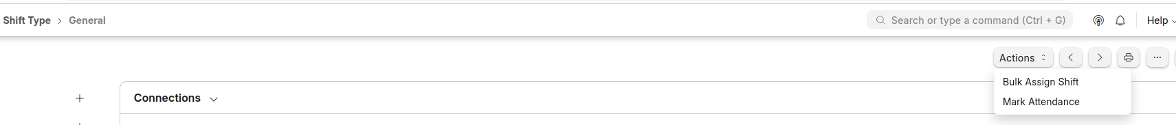 Then, in the Shift Type doctype, I use the “Mark Attendance” button under “Actions”.