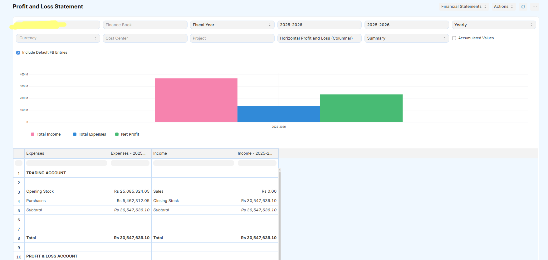 Horizontal Profit and Loss (Columnar)