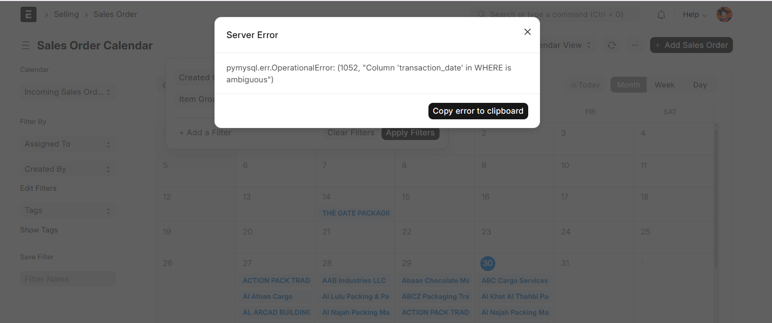 Calender View when filtered by timespan and linked Sales Order Item or Work order item’s Item Group: