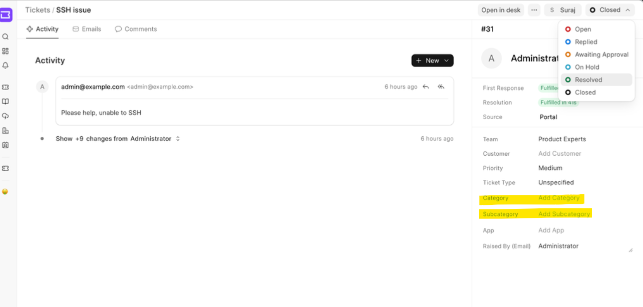 But in my Frappe Cloud Helpdesk, I cannot see the Category and subcategory.