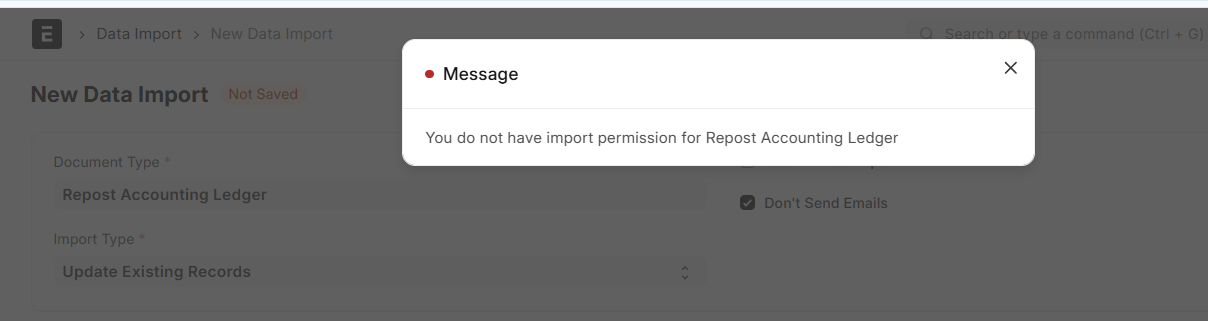 Although I have system manager role, system restricts from importing records.