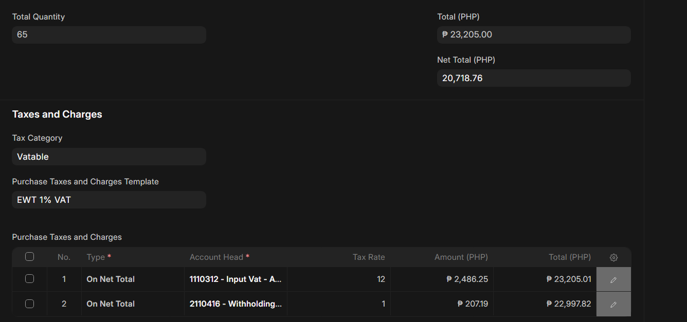 You’ll see the Input VAT total becomes ₱23,205.01 instead of ₱23,205.00.