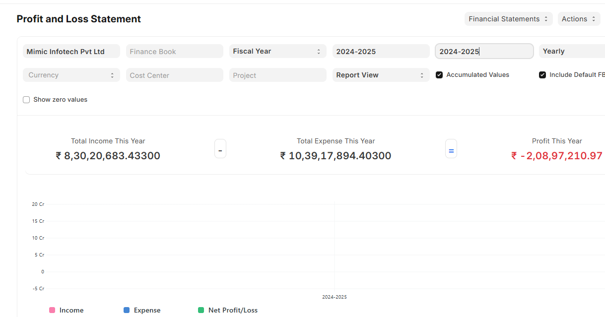 We are observing an inconsistency in the Profit and Loss graph. When we open the detailed statement, it shows a loss for FY 2024-25, whereas the home page is displaying a profit for the same financial year.