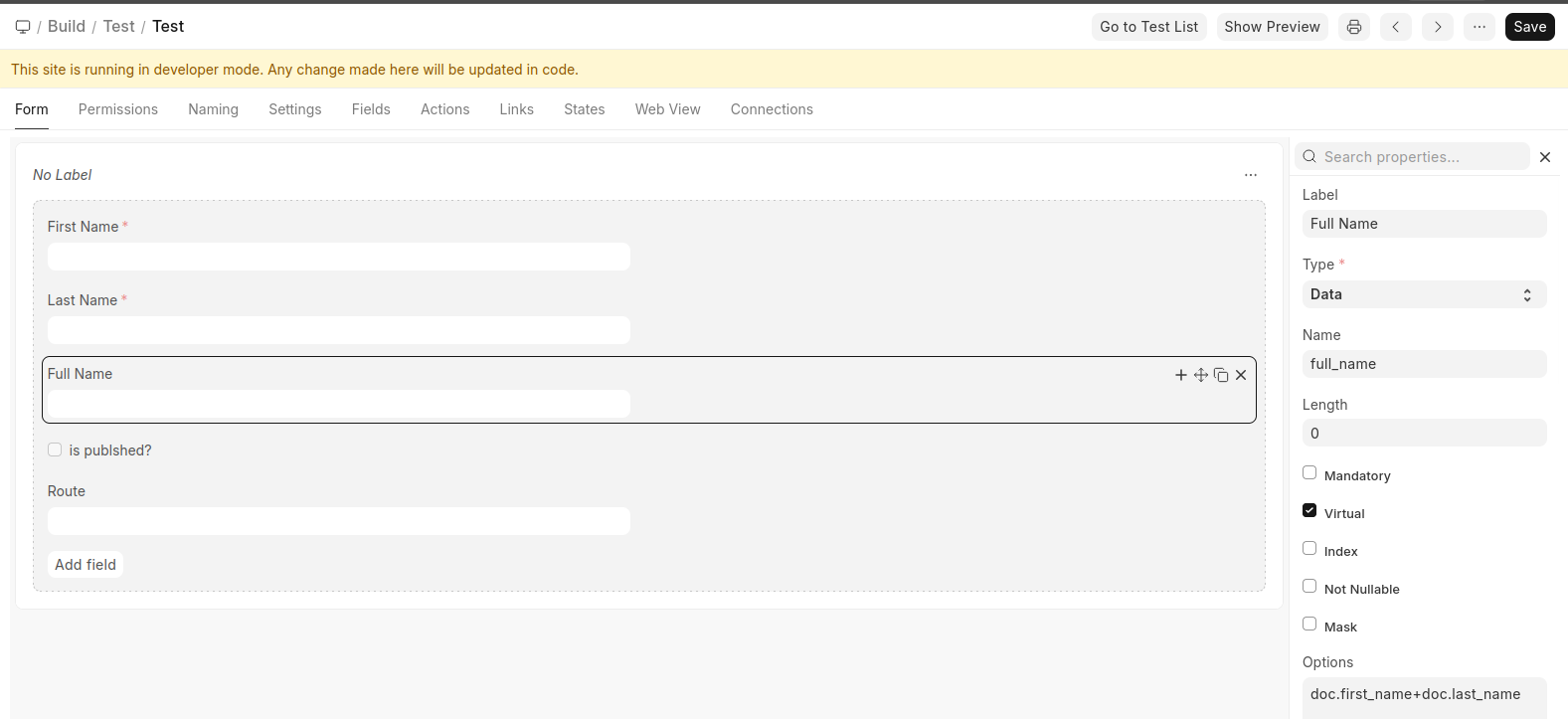 doc.full_name = doc.first_name + doc.last_name # when full_name is not virutal