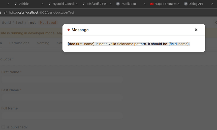 know that f string syntax is not working for me: options = f"{doc.first_name} {doc.last_name}" gives error when we create a document.