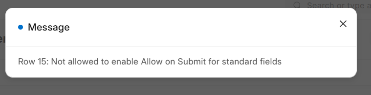 I tried with other field too like allow Submit on customer but get same error “Not Allowed to change ‘‘field-name after submission from old-value to new-value“