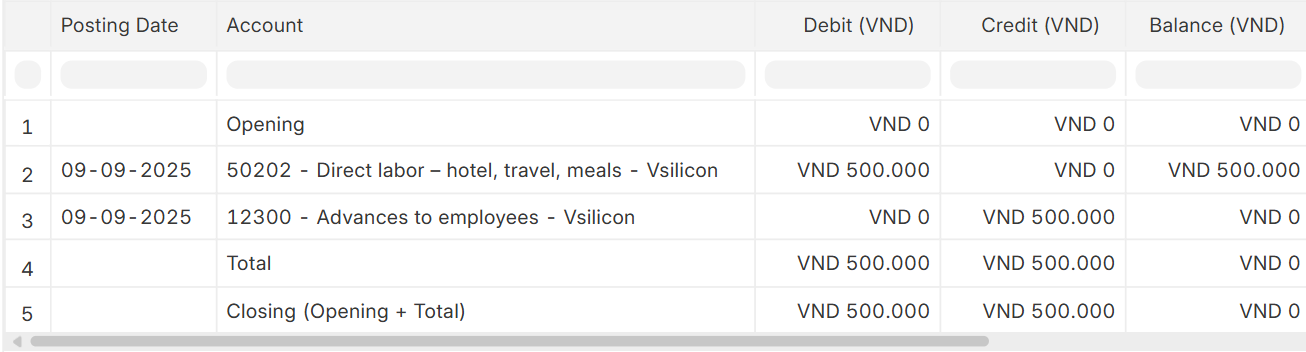 - Cash Advance (Debit) VND 1,500