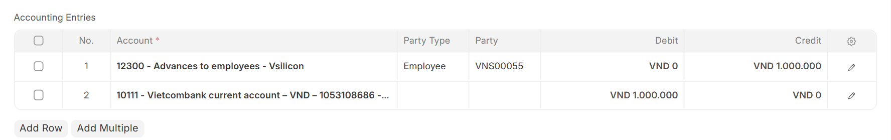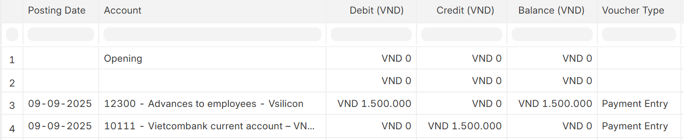 - Cash Advance (Credit) VND 1,000