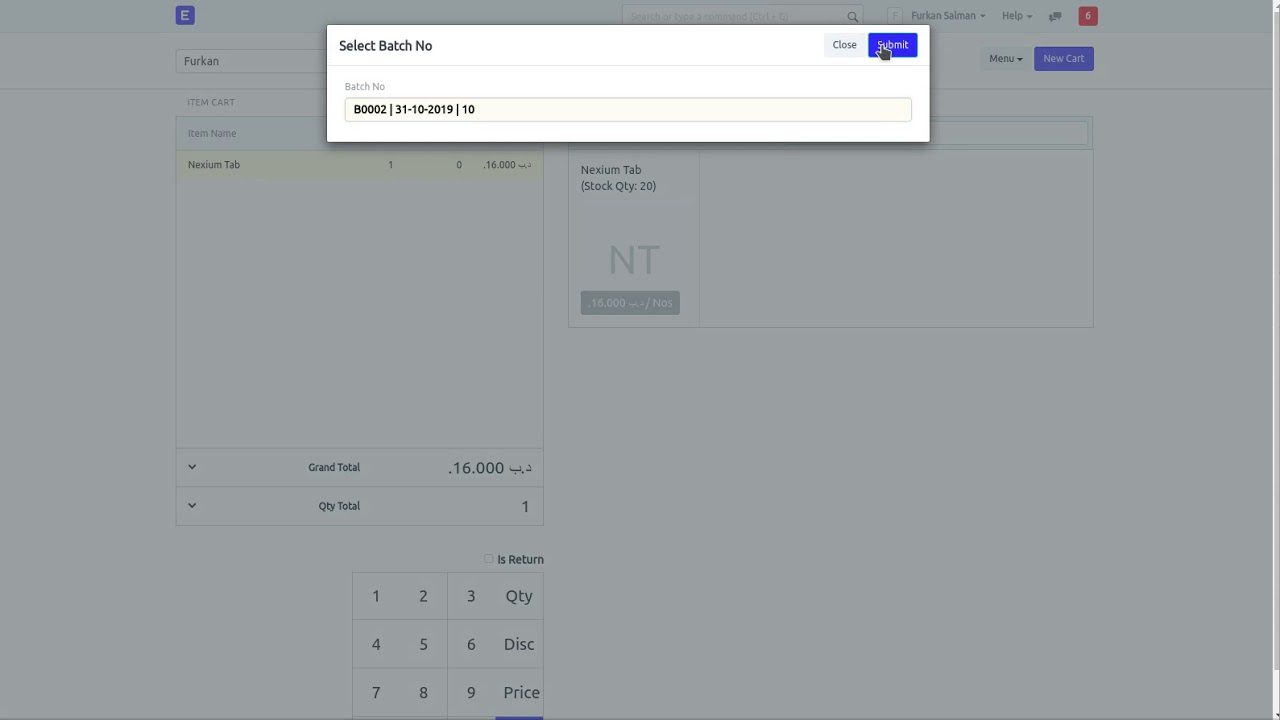 If Batch Stock is less than the batch qty in the Item cart area then notify on Pay button. So the invoice does not get stuck in the pos. - 0:53
