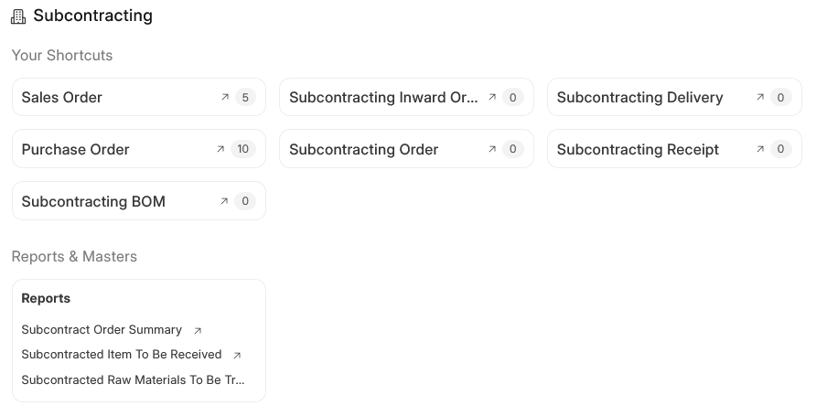 The Subcontracting menu is a case in point for so much truncation that the shortcuts lose meaning