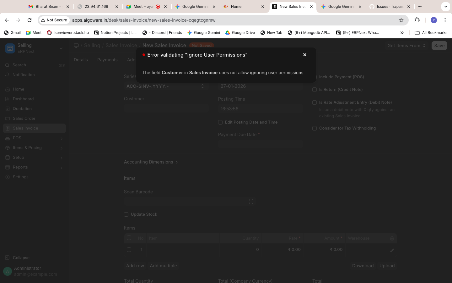 The field Company in Sales Invoice does not allow ignoring user permissions