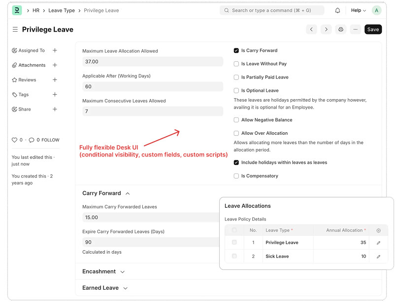 Frappe HR, however, stands out as a great example since it’s built on top of ERPNext and leverages Desk UI.