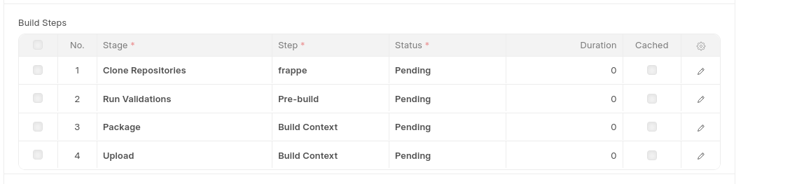 None of the build steps (Clone Repositories, Run Validations, Package, Upload) show any logs or progress, so there’s no way to see where it’s failing.