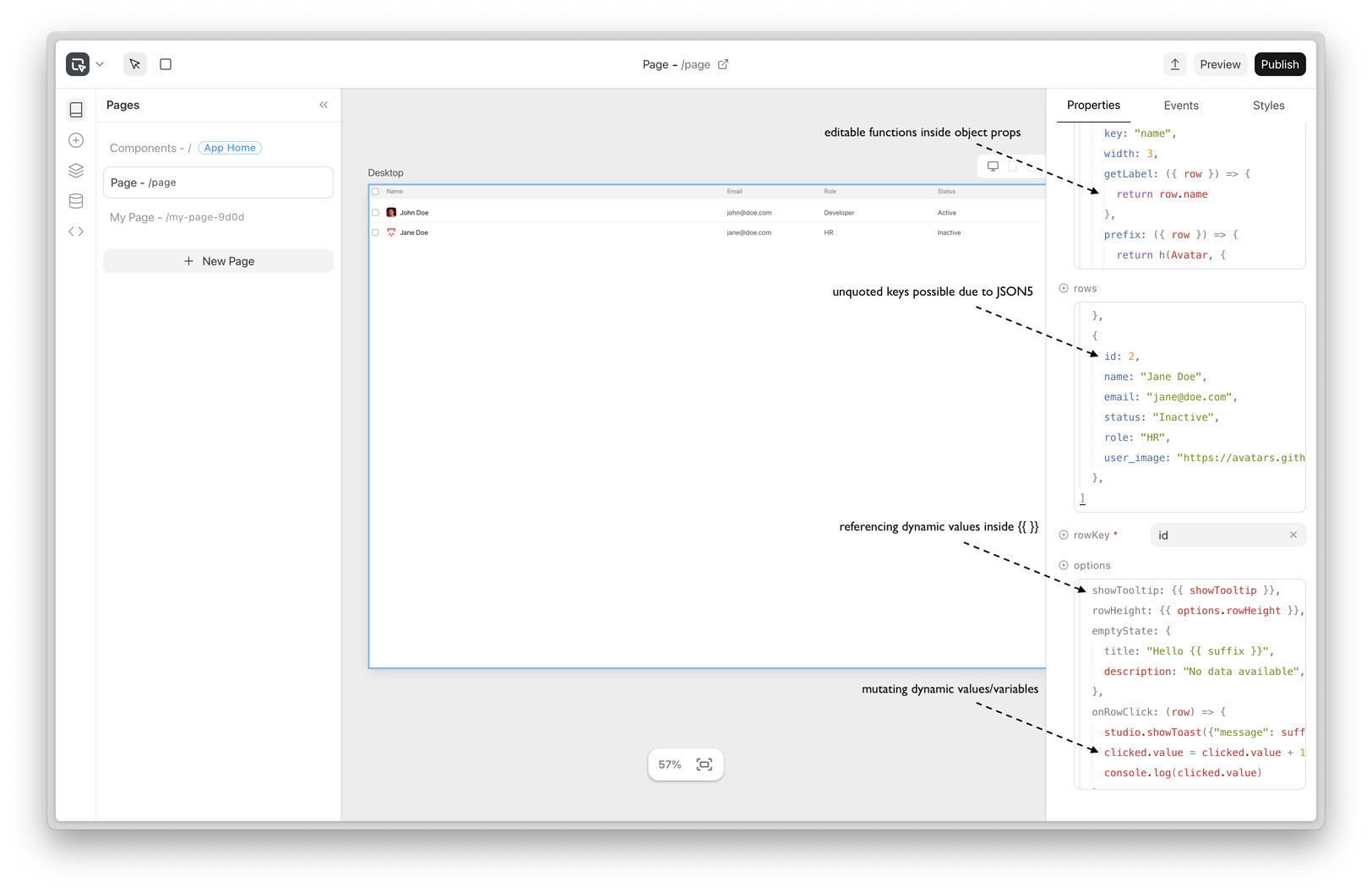 Functions inside object props are supported now: