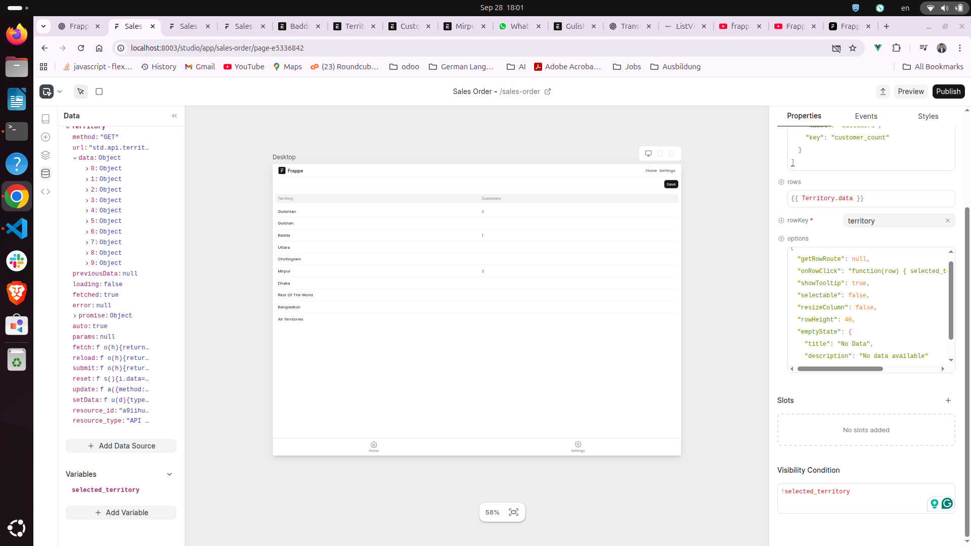 The table does not hide after clicking. It seems like Visibility Condition is not reacting to the global variable (selected_territory).
