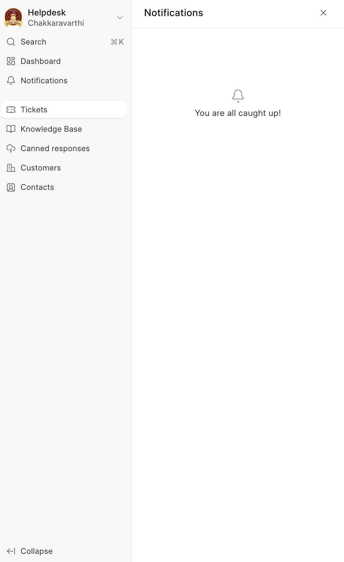 The helpdesk notification is empty. Even if someone mentions me in a ticket comment, it is still empty. No notification is shown in that Tab