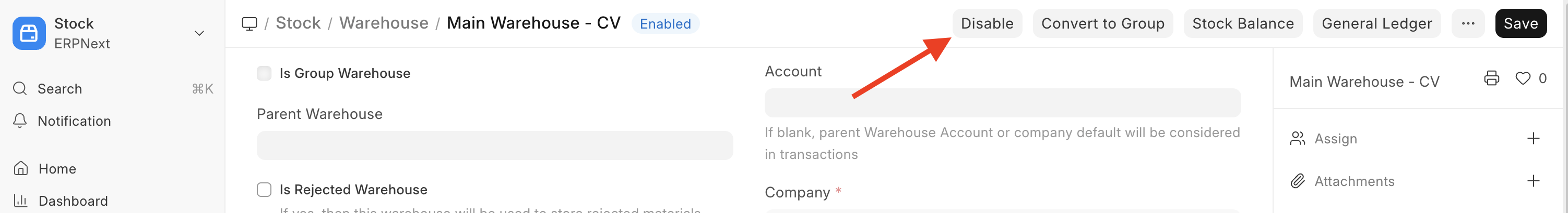 A user asked how to disable a warehouse so it doesn’t show in ERPNext’s stock/inventory screens.