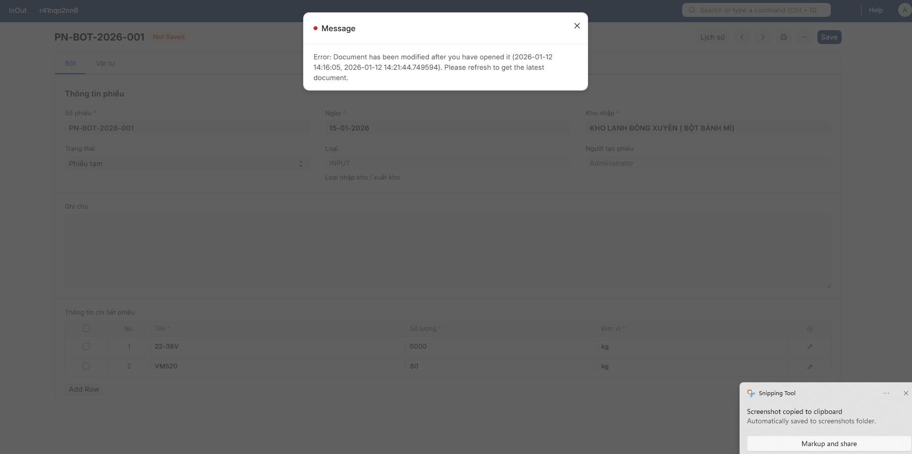 The document is still saved successfully, but it shows an error message like the one above.