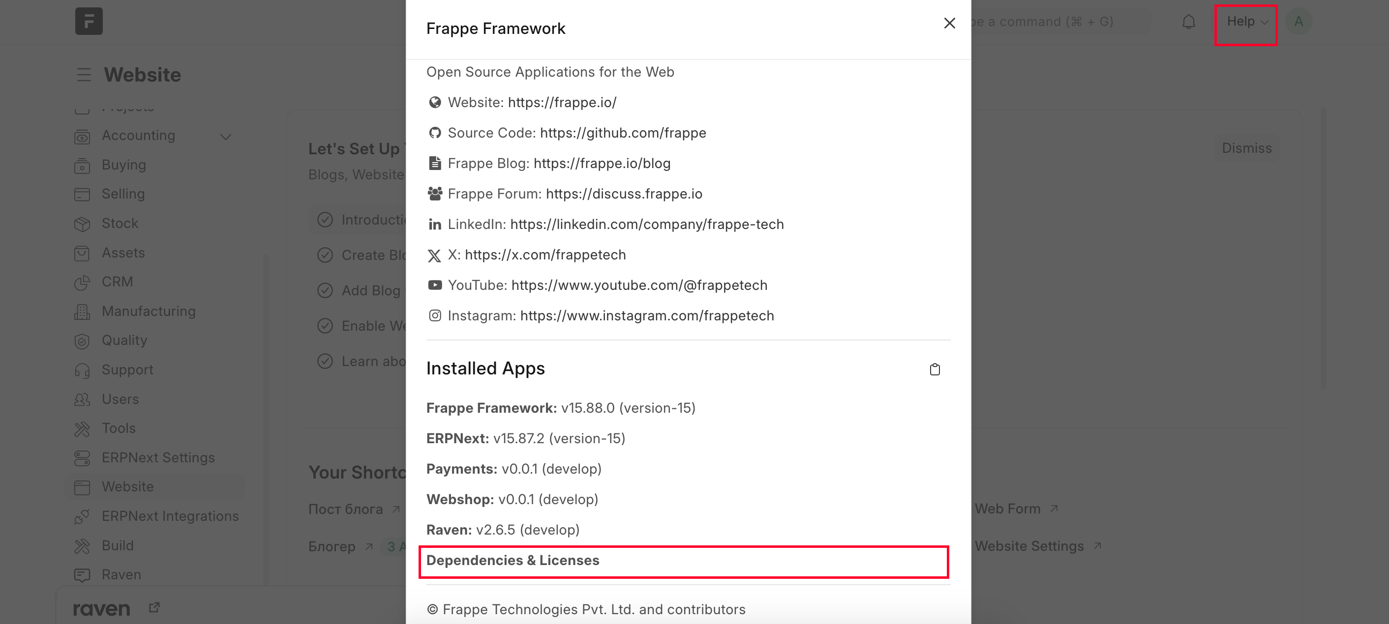 I’ve updated to version 15. Menu “Help” / “About” now includes new line “Dependencies and Licenses”. When I click it, go to the [my domain]/attribution page