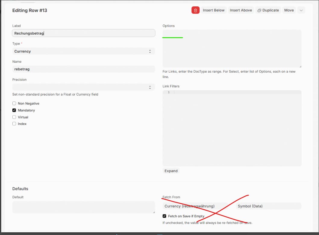 Assumption: the fieldname for the field labelled ‘Wahrung’ is wahrung