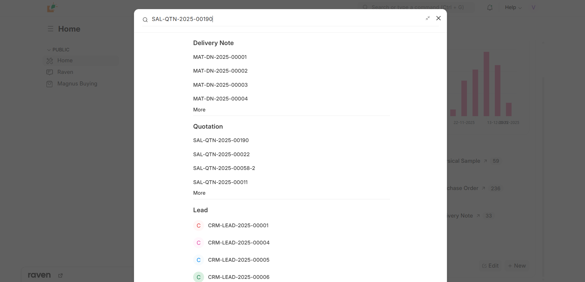 When users search for a specific document (for example, a particular Quotation ID like SAL-QTN-2025-00190), the Awesome Bar returns results from multiple DocTypes (Delivery Notes, other Quotations, Leads, etc.) that contain similar text, instead of prioritizing or limiting the results to the exact document being searched.