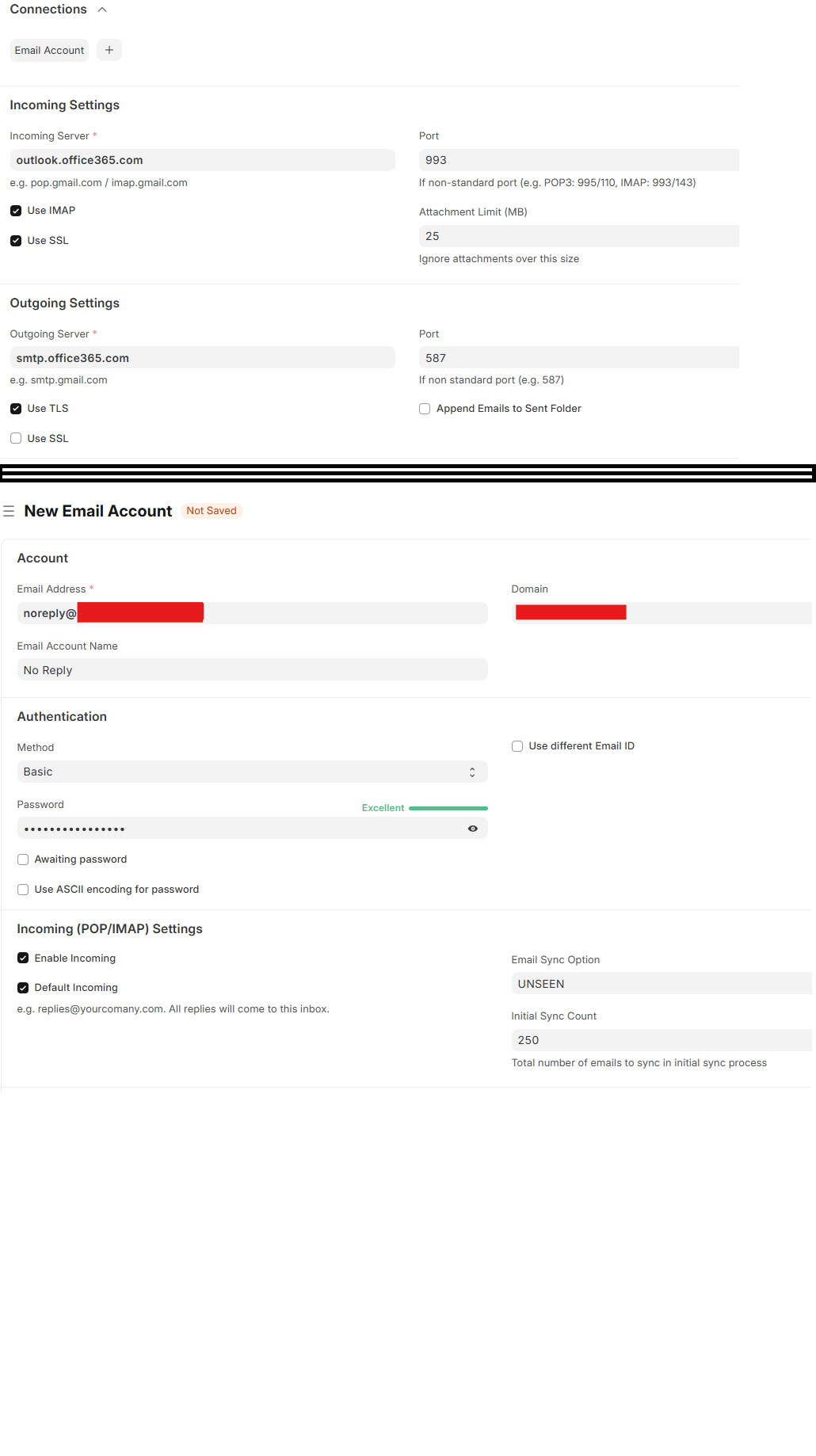 The credentials are correct, but it keeps failing. Could you please help us verify if any specific settings like IMAP access or authentication method need to be enabled from the Office 365 side?