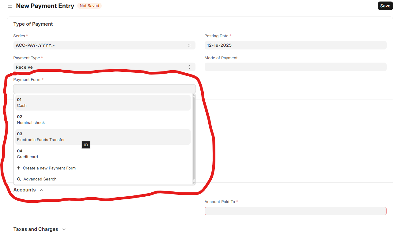Error: Value missing for Payment Entry: Payment Form