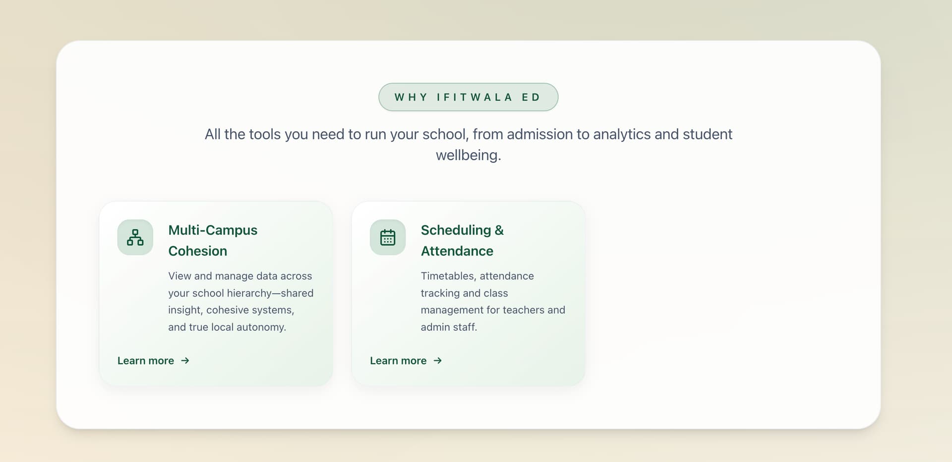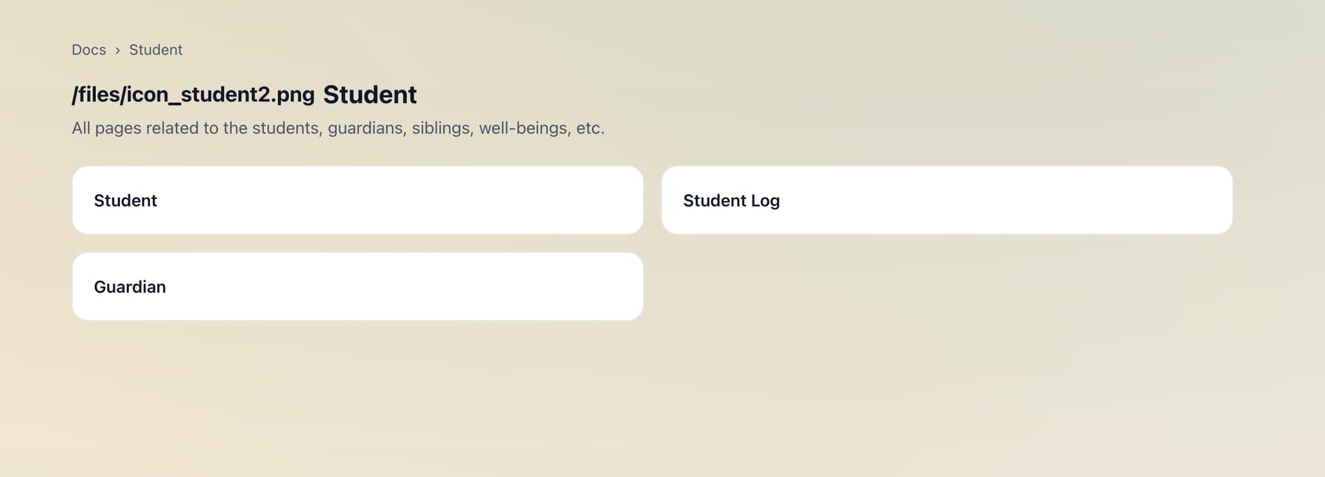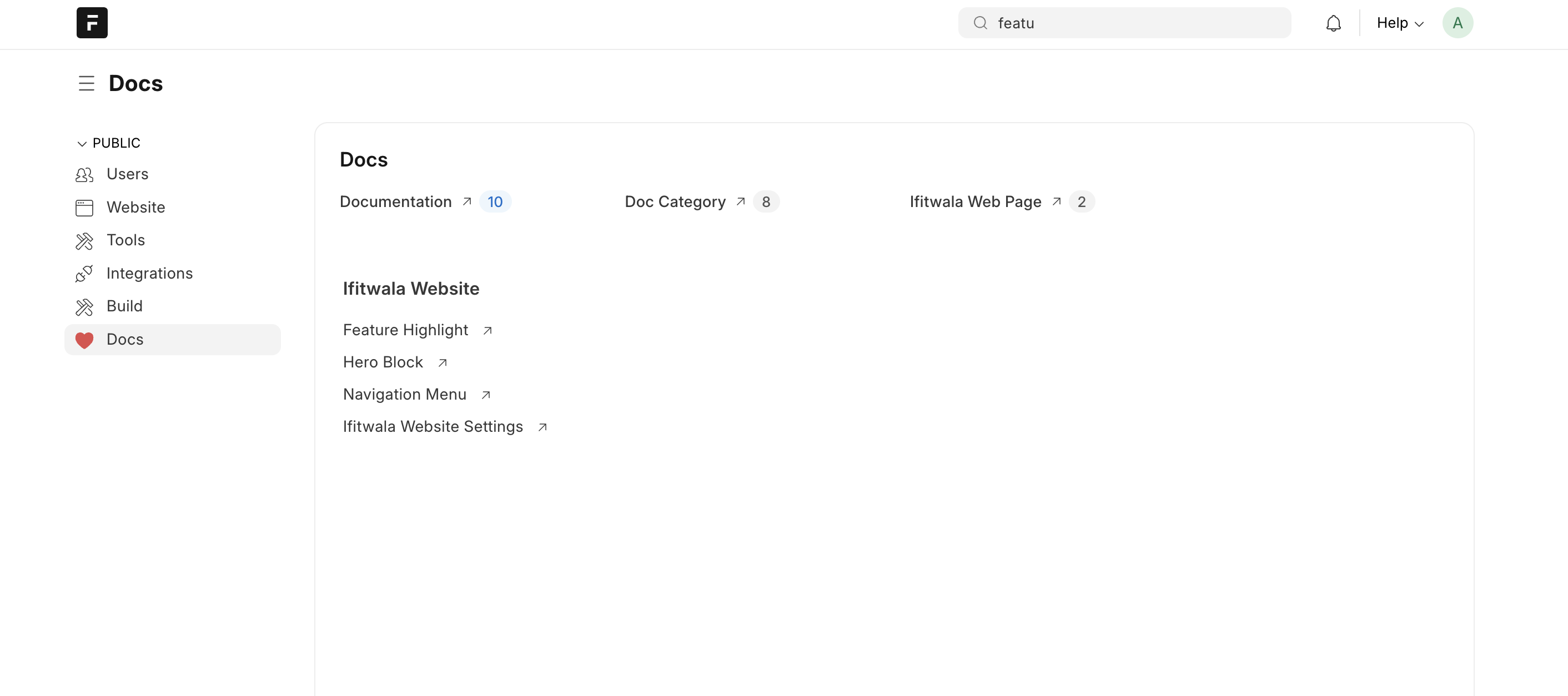 We have few doctypes for the documentation side of things: Documentation, Doc Category and Docs Screenshot (child table to keep track of all images ). On the website side of things, we have a few more doctypes: Ifitwala Web Page, Ifitwala Web Page Section, Feature highlight and Hero block