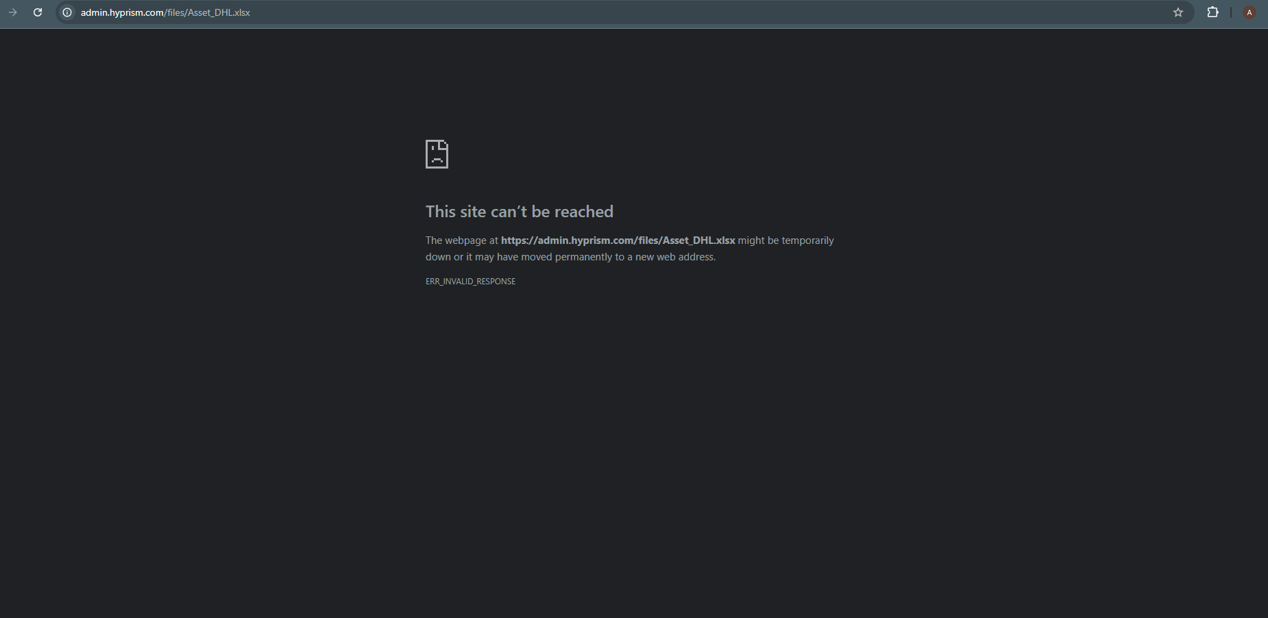 I’m storing files via the File Manager, and I can confirm the files (CSV, XLSX, PDF) are present on the filesystem and accessible if I browse the folder directly. However, when I try to open these files from the Frappe desk (admin panel), the browser shows “This site can’t be reached – ERR_INVALID_RESPONSE” for those file types. Image files (like JPG/PNG) open fine from the same setup.