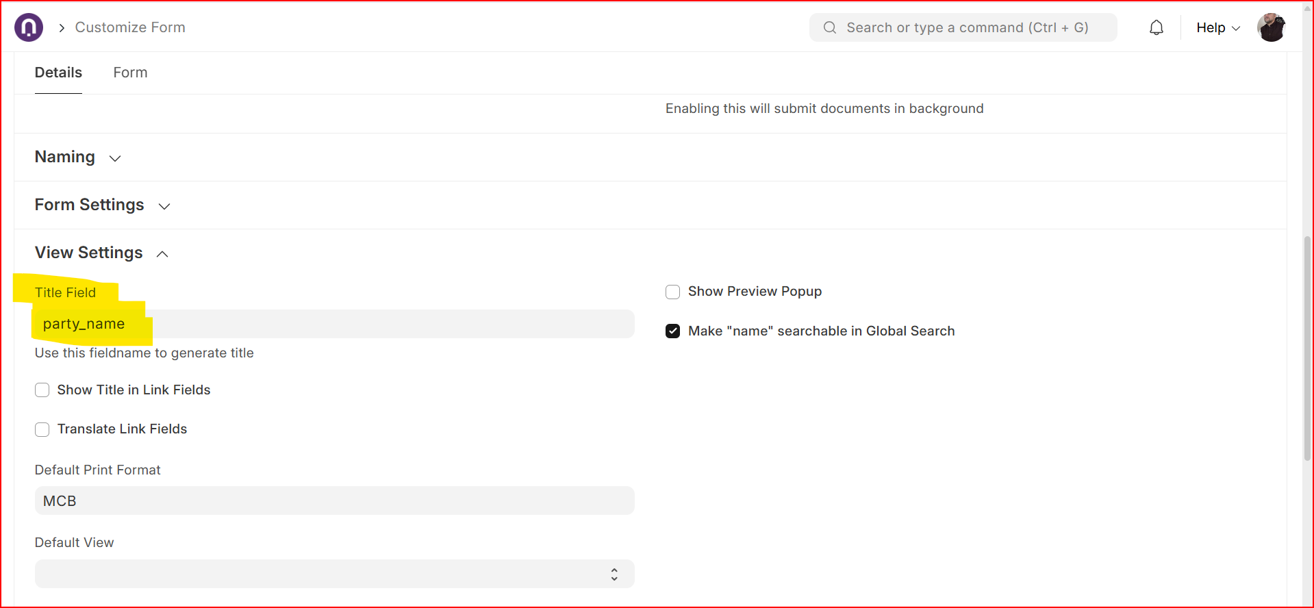 When making a Payment Entry with a cust_master_name set as Naming Series, the title of the payment entry is hardcoded by backend to be the value of party, is there a setting that makes the title to be set to the value of party_name?