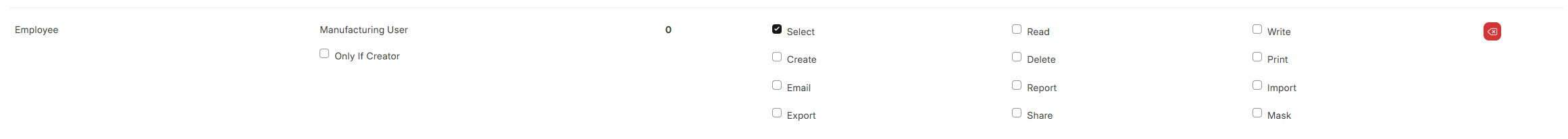 Manufacturing User) select only permission on Employee doctype