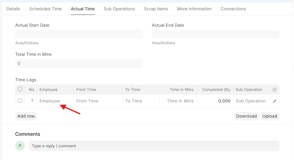 Select Employee in the actual time log in the job card