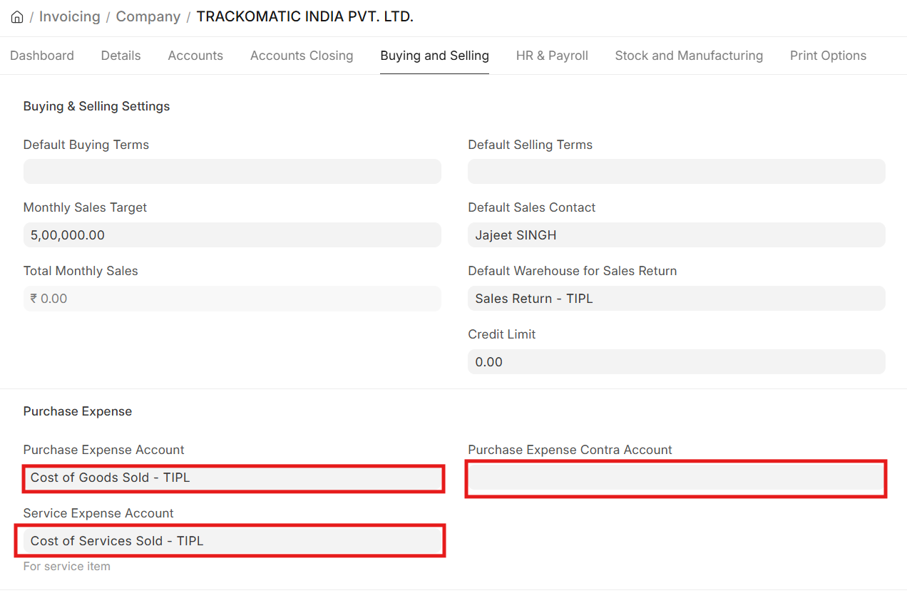 We have already setup the Purchase Expense Account and Service Expense Account..