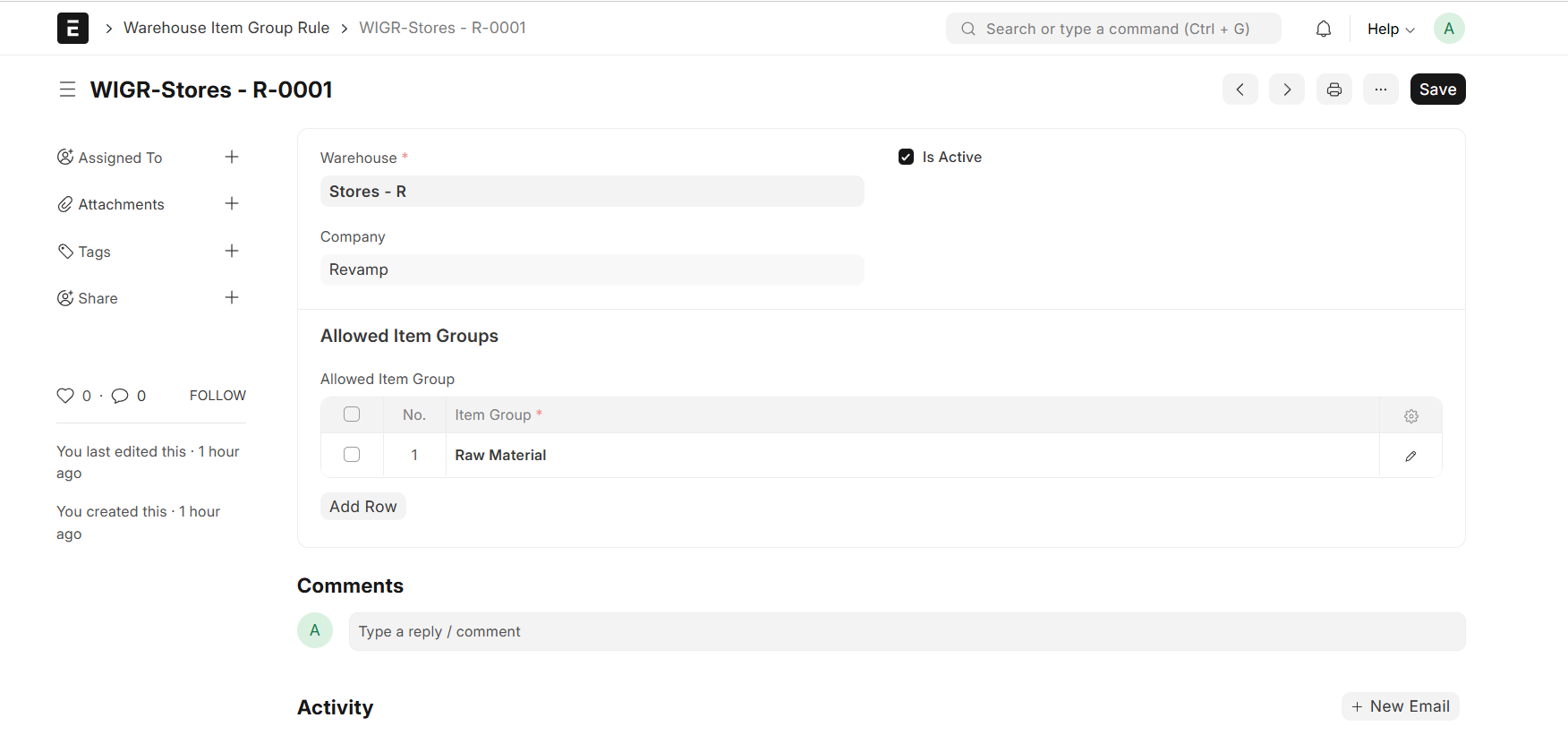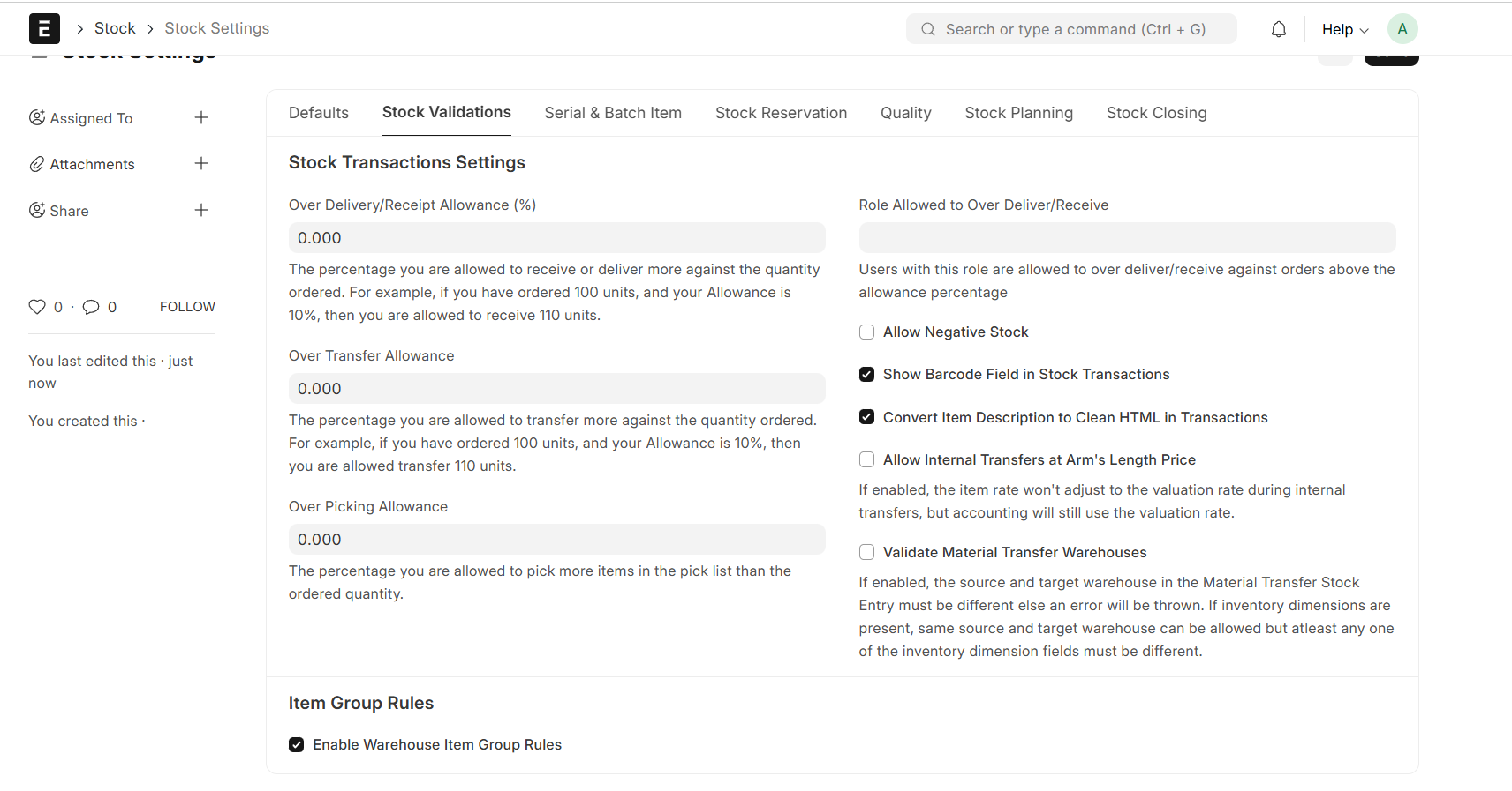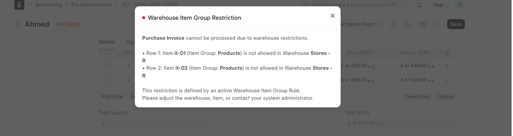 “Only certain Item Groups are allowed in specific Warehouses”
