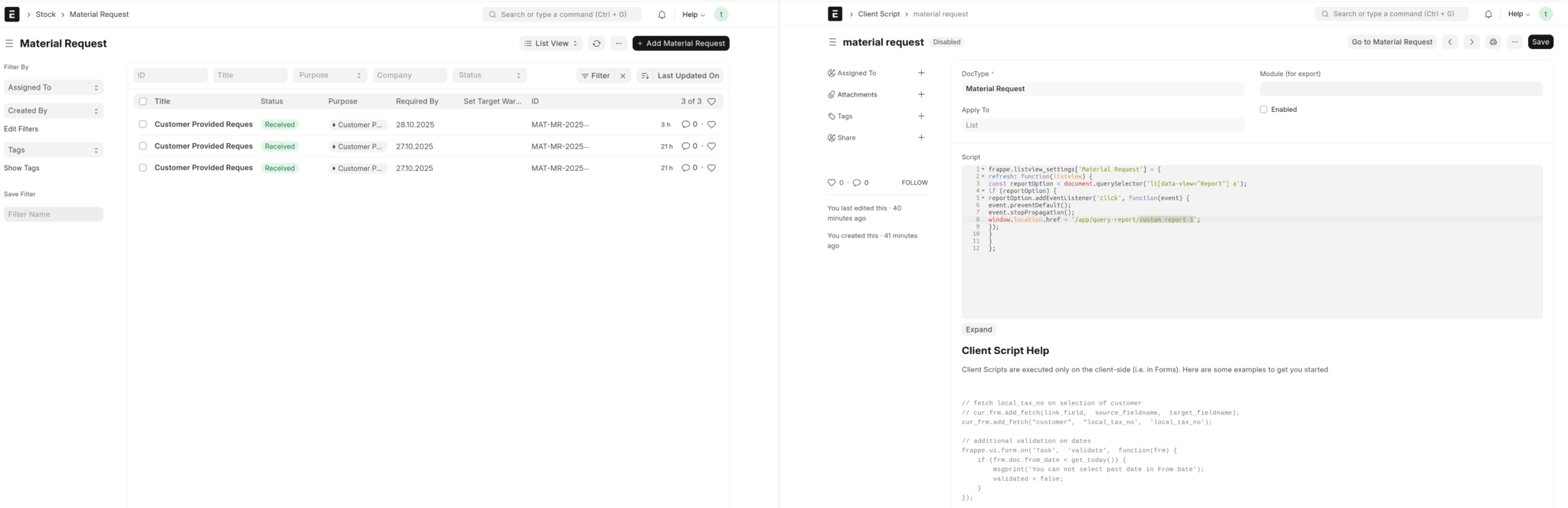 Hi i adapted this for the Material Request doctype and it works but for some reason it breaks the status column in list view. can someone provide help ?