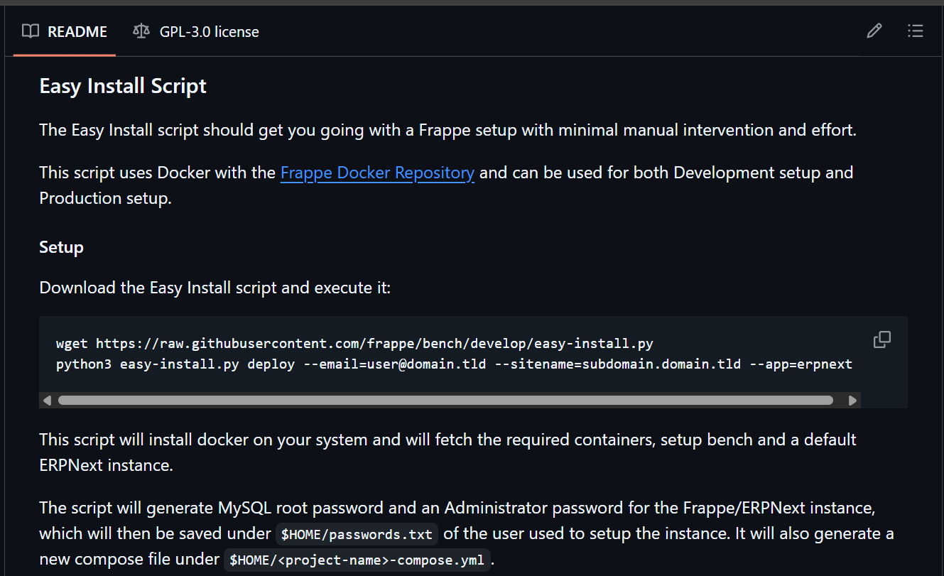 git clone GitHub - frappe/frappe_docker: Docker images for production and development setups of the Frappe framework and ERPNext