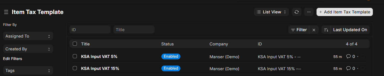 I have an item with two Item Tax Templates defined: one for sales transactions and one for purchase transactions. However, when performing a transaction, ERPNext always fetches only the first Item Tax Template defined on the item.