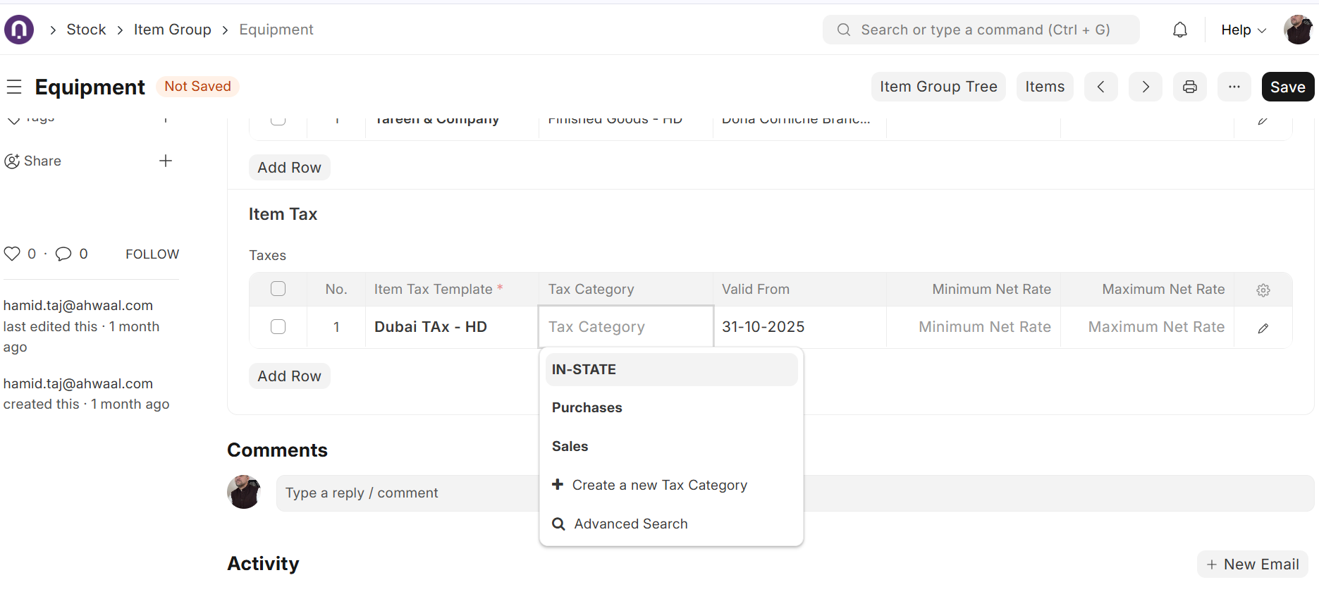 I attempted to address this by adding two checkboxes on the Item Tax Template, Input and Output, and implementing a client script to select the Input template for purchase transactions and the Output template for sales transactions. However, this logic is being overridden by ERPNext’s standard functionality.
