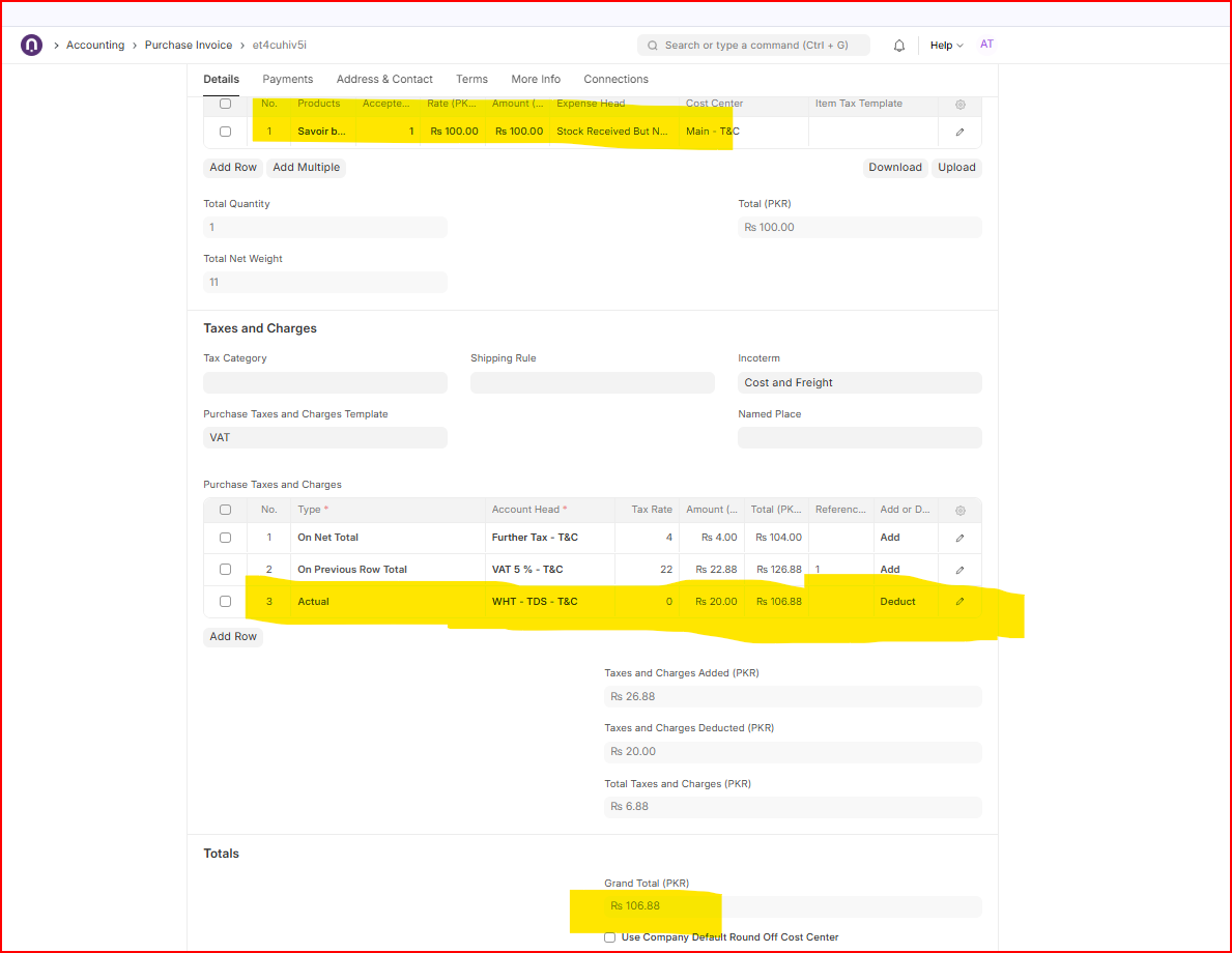 I tried to follow this video https://www.youtube.com/watch?v=JMvmORnc0Hw&t=141s and the previous one in the list, but after saving the Purchase Invoice nothing happens in the Taxes and Charges section. The line with the Tax Withholding does not appear like in the video. Why?