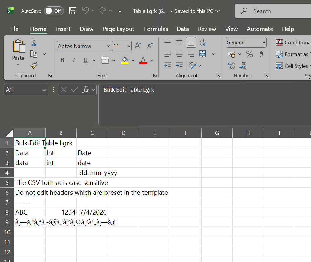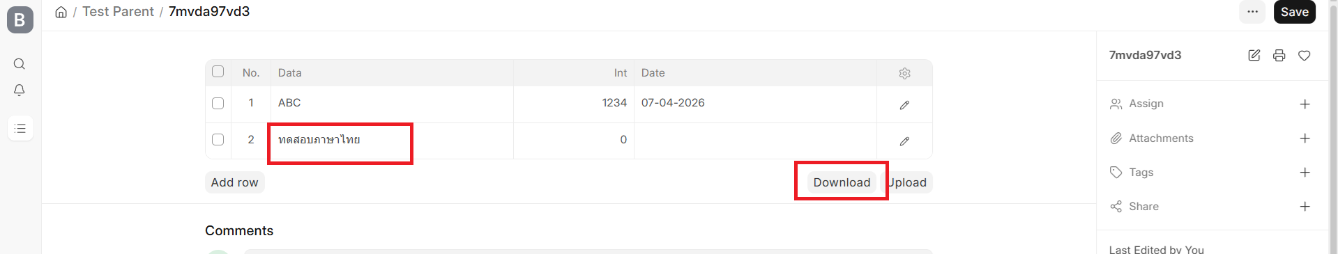 An issue was encountered when exporting data to a CSV file. Thai text is not displayed correctly when the file is opened in Excel, resulting in unreadable or garbled characters. Meanwhile, English text displays as expected without any issues.