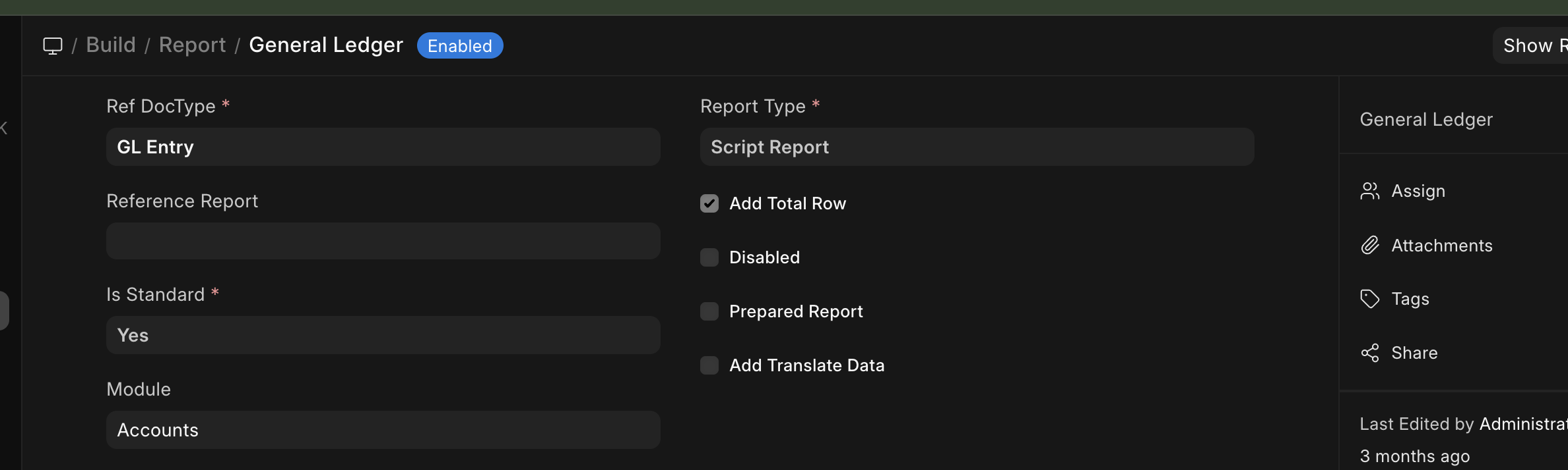 How can I uncheck “Add total row” in frappe cloud ?