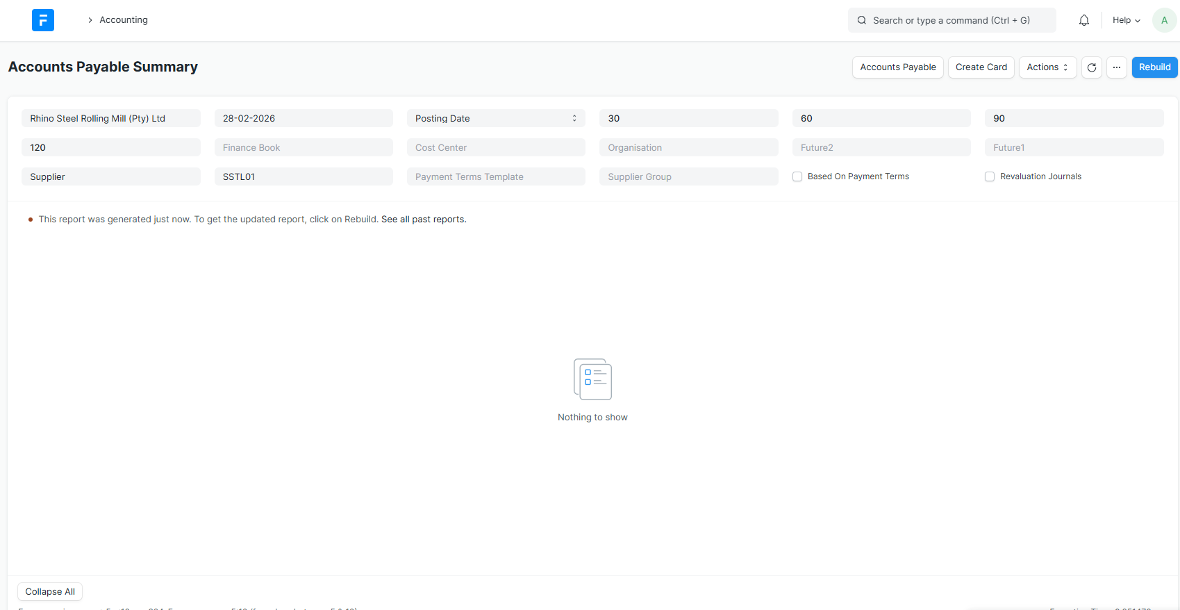 In the standard reports such as Accounts Payables Summary and Accounts Receivable Summary, there are no outstanding transactions appearing.