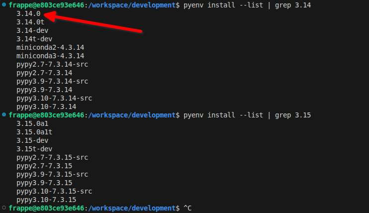 pyenv install --list | grep 3.14