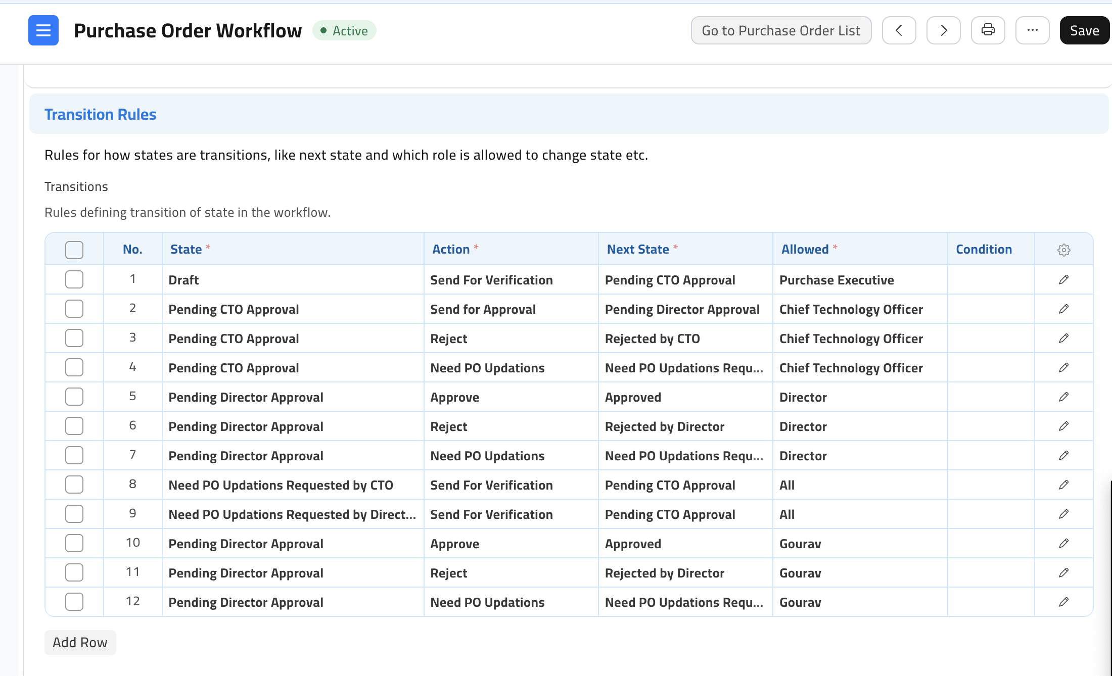 In My Purchase Order workflow, the Update Items button is visible only when the PO is in the Approved state.