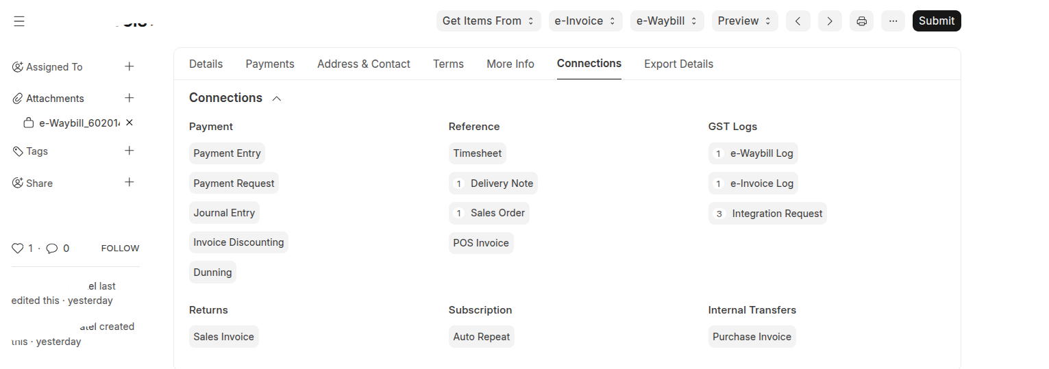After creating the Sales Invoice post - Delivery Note, the e-Way Bill and e-Invoice were also successfully generated. However, once everything is completed, the Sales Invoice is unexpectedly reverting back to Draft status automatically.