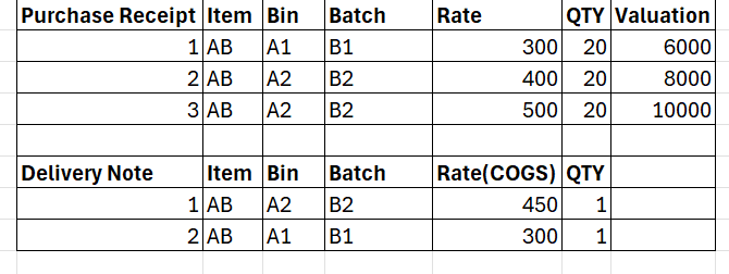 due to this reason system is calculation COGS based on batch + Bin +SKU