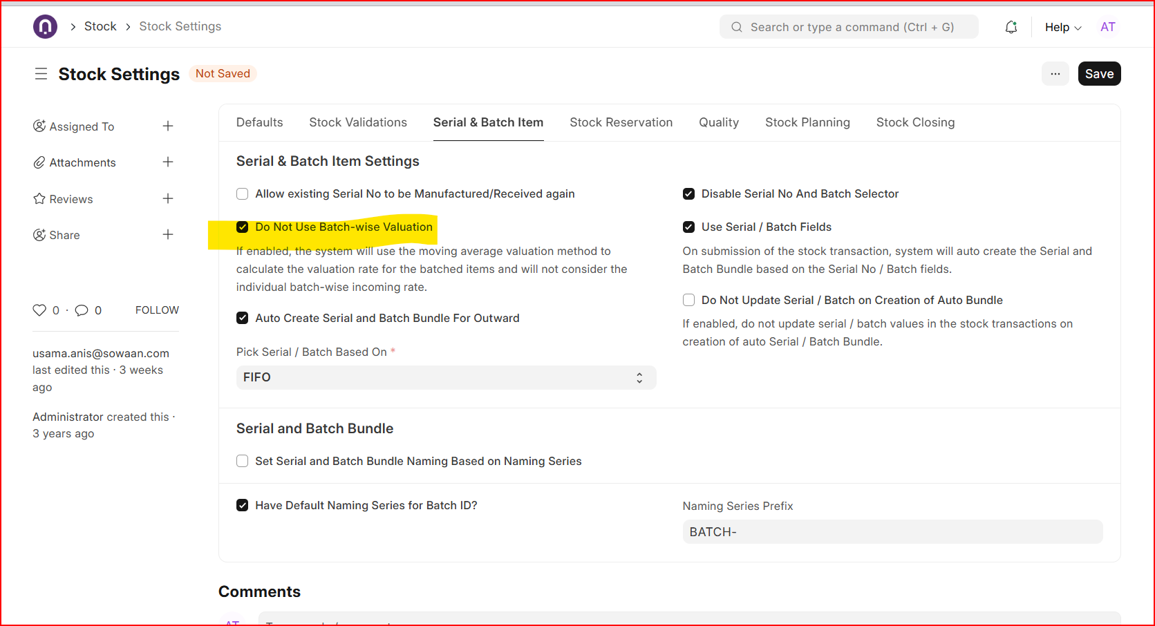 By default, when batch getting created system is tagging the use batch wise valuation